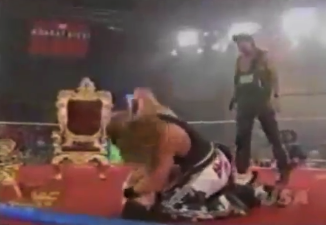 Jerry Lawler is in the ring when Raw returns from break. He calls the Ohio crowd a "repulsive bunch of peons" that doesn't deserve to see this edition of the King's Court. He makes a number of age jokes about Bret's parents, re-igniting his feud from 1993, which ended with Lawler being falsely accused of raping a thirteen-year-old girl. The question of whether Bret Hart was behind the set-up or not should have been incorporated into the storyline. Bret Hart steps into the ring, and Lawler reminds him of last year's King of the Ring, in which Bret won but was then attacked by Lawler with his new scepter and thrown. Bret threatens the King with his belt, but Jerry brings out his other guest for the evening, Bret's challenger Diesel. The Intercontinental champion, along with Shawn Michaels, steps into the ring. Bret has "a tremendous amount of respect" for Diesel for some reason (he is rather tall), but he will beat Big Daddy Cool at KOTR. Diesel promises the VIP treatment for Hart: Very Intense Pain. Michaels sucker-punches the WWF champion, letting Diesel jackknife Hart. Shawn jumps on the fallen Hitman with a series of punches and is then joined by the King in a stomping session that would make Ronnie Garvin proud. Federation officials flood into the ring to break up the beatdown. Diesel poses with both belts before leaving the ring.