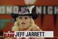 | Double J takes on Virgil in what must be the latter's last match on Raw ever, although I think that every time I see him in action. Ted accurately predicts that Virgil will go "absolutely nowhere." Jarrett and Virgil exchange hammerlocks as Vince doubts that the former DiBiase bodyguard will Outmaneuver (#3) the country singer. McMahon does, however, put over Virgil's punches, proving that the "Bodyguard Bash" finishing move on the Virgil action figure is no joke. Vince then gets a note telling him that forty-year-old Rhonda Shear would be a guest timekeeper at Wrestlemania. Double J complains about hair-pulling while Vince and Ted struggle to pronounce George Stephanopoulos's name. Ted Dibiase gets handed a note, prompting him to plug "Past Midnight" on the USA Network and prompting Vince to note the unlikelihood of the Million Dollar Man reading promotional notes. Virgil gets whipped to the corner, but floats over Jarrett with a Nice Maneuver (#4) as he charges after him. Virgil then hits an inverted atomic drop which Vince calls a "reverse piledriver." Unfortunately, the wrestling superstar telegraphs a back body drop, letting Jarrett hit a DDT for the victory. |